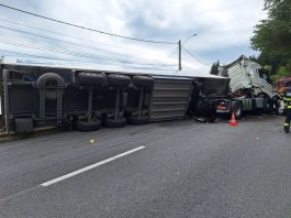 Detaliile accidentului dintre două autocamioane de la Vama: Șoferul unui camion s-a aplecat după o sticlă cu apă și a pătruns pe contrasens lovind...
