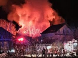 Puternic incendiu la Frasin în care au ars o locuință și mai multe anexe