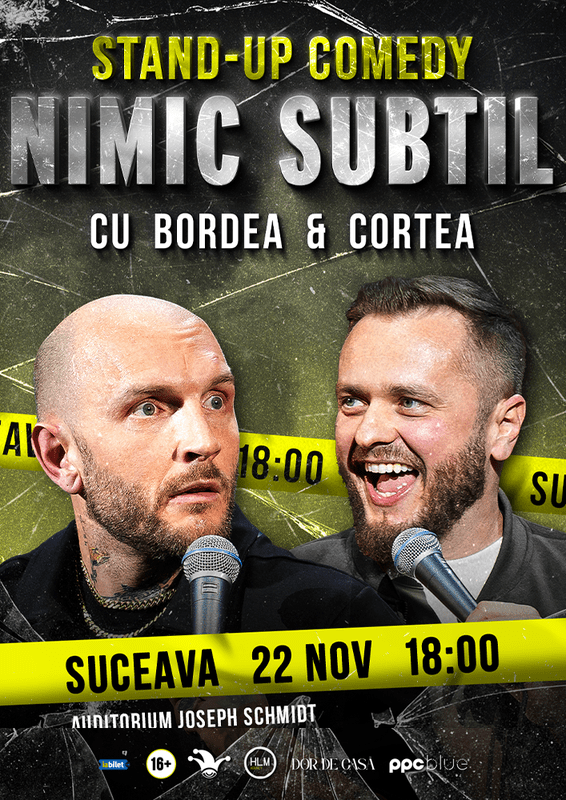 Umorul direct și nefiltrat al lui Cătălin Bordea și Nelu Cortea ajunge la Suceava, unde cei doi comedianți vor susține show-ul de stand-up comedy „Nimic subtil” în cadrul a două reprezentații distincte, pentru a satisface cererea mare a publicului din regiune.