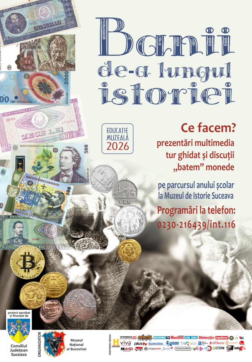 Muzeul Național al Bucovinei continuă în anul 2026 seria proiectelor de educație muzeală cu programul „Banii de-a lungul istoriei”, o activitate interactivă adresată elevilor, tinerilor și cadrelor didactice, desfășurată la Muzeul de Istorie din Suceava.