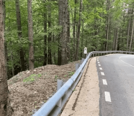 VIDEO// Drumul nou spre Rarău începe deja să se surpe în zona în care versantul a fost afectat de lucrări de exploatare forestieră