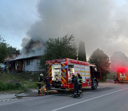 Incendiu într-o gospodărie din Vatra Dornei de la un conductor electric defect: Pompierii au salvat casa de locuit și adăpostul de animale