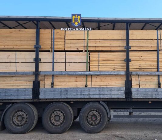 Incidentul de la Broșteni cu tamponarea mașinii de poliție: Camionul oprit în trafic transporta ilegal 21 de mc de buștean